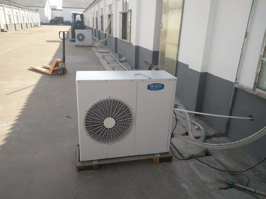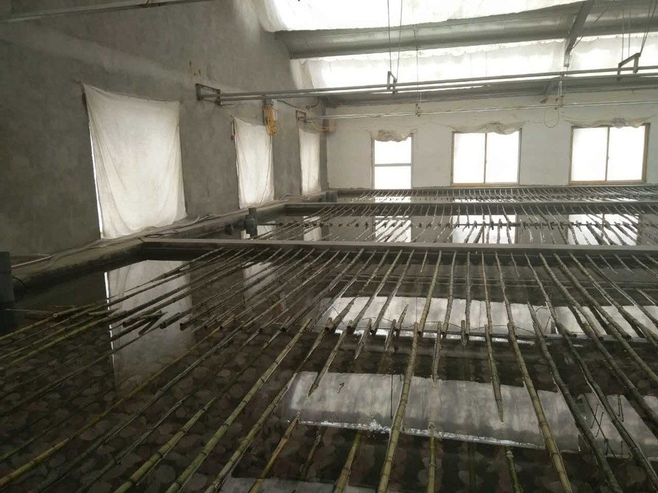 育苗場單個育池面積為50㎡,原來采用電加熱絲加熱,單冷機制冷,考慮到原方案控制麻煩、電加熱絲加熱成本高,電加熱絲周圍溫度太高會出現(xiàn)死苗現(xiàn)象等原因,現(xiàn)采用天舒提供的紫菜專用育苗恒溫設(shè)備,極大地方便了客戶的使用、增加了育苗的產(chǎn)量,并降低了運行成本。